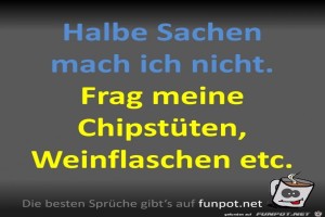 | Keine halben Sachen Bild (67 KB) 19Lustiges → klasse Sprüche und Witze Für halbe Sachen sind andere zuständig, nicht ich! | Lustiges → klasse Sprüche und Witze | 14.07.21-10:30 | ||