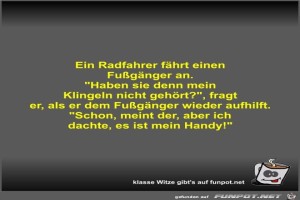 | Ein Radfahrer fährt einen Fußgänger an Bild (30.79 KB) 6Lustiges → klasse Sprüche und Witze | Lustiges → klasse Sprüche und Witze | 27.06.21-08:23 | Fossy | |