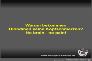 | Warum bekommen Blondinen keine Kopfschmerzen? Bild (20.71 KB) 7Lustiges → klasse Sprüche und Witze | Lustiges → klasse Sprüche und Witze | 24.06.21-08:17 | Fossy | |