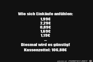 | Wie sich Einkäufe anfühlen Bild (29.98 KB) 7Lustiges → klasse Sprüche und Witze | Lustiges → klasse Sprüche und Witze | 25.06.21-09:44 | ||