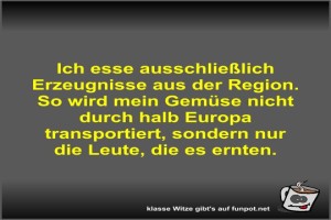 | Ich esse ausschließlich Erzeugnisse aus der Region Bild (36.87 KB) 6Lustiges → klasse Sprüche und Witze | Lustiges → klasse Sprüche und Witze | 05.05.-10:10 | Fossy | |
