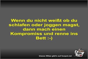 | Wenn du nicht weißt ob du schlafen oder joggen magst Bild (28.49 KB) Lustiges → klasse Sprüche und Witze | Lustiges → klasse Sprüche und Witze | 03.05.-18:32 | Fossy | ||