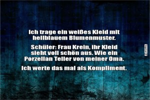 | Lustiger Kleid-Kommentar eines Schülers Bild (194.66 KB) von Valentino am 04. Mai 2025 um 14:31 Uhr Lustiges → klasse Sprüche und Witze | Lustiges → klasse Sprüche und Witze | 04.05.-14:31 | Valentino | ||