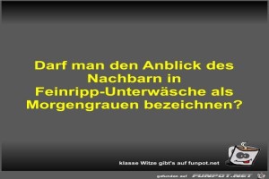 | Darf man den Anblick des Nachbarn in Feinripp-Unterwäsche... Bild (27.49 KB) 9Lustiges → klasse Sprüche und Witze | Lustiges → klasse Sprüche und Witze | 07.06.21-12:47 | Fossy | |