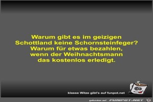 | Warum gibt es im geizigen Schottland keine Schornsteinfeger? Bild (28.63 KB) 9Lustiges → klasse Sprüche und Witze | Lustiges → klasse Sprüche und Witze | 05.06.21-17:18 | Fossy | |