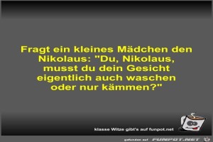 | Fragt ein kleines Mädchen den Nikolaus Bild (29.95 KB) 18Lustiges → klasse Sprüche und Witze | Lustiges → klasse Sprüche und Witze | 05.06.21-10:54 | Fossy | |