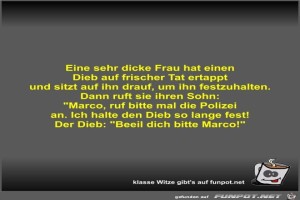 | Eine sehr dicke Frau hat einen Dieb auf frischer Tat... Bild (33.89 KB) 10Lustiges → klasse Sprüche und Witze | Lustiges → klasse Sprüche und Witze | 02.06.21-11:35 | Fossy | |