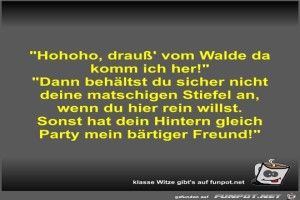 | "Hohoho, drauß' vom Walde da komm ich her!" Bild (39.9 KB) 6Lustiges → klasse Sprüche und Witze | Lustiges → klasse Sprüche und Witze | 05.06.21-08:00 | Fossy | |