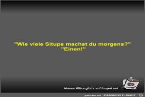 | Wie viele Situps machst du morgens? Bild (14.75 KB) 9Lustiges → klasse Sprüche und Witze | Lustiges → klasse Sprüche und Witze | 29.05.21-10:36 | Fossy | |