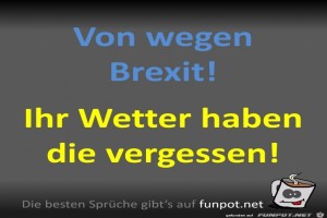 | Von wegen Brexit Bild (58.46 KB) 9Lustiges → klasse Sprüche und Witze Das britische Wetter brauchen wir sowas von gar nicht. Das sollen die gefälligst noch abholen ;-) | Lustiges → klasse Sprüche und Witze | 29.05.21-07:48 | Fossy | |