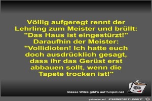 | Völlig aufgeregt rennt der Lehrling zum Meister und brüllt Bild (47.27 KB) 6Lustiges → klasse Sprüche und Witze | Lustiges → klasse Sprüche und Witze | 27.05.21-13:38 | Fossy | |