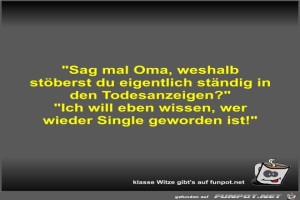 | Sag mal Oma, weshalb stöberst du eigentlich ständig in den Bild (31.35 KB) 10Lustiges → klasse Sprüche und Witze | Lustiges → klasse Sprüche und Witze | 25.05.21-08:09 | Fossy | |