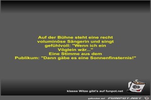 | Auf der Bühne steht eine recht voluminöse Sängerin und... Bild (24.11 KB) 11Lustiges → klasse Sprüche und Witze | Lustiges → klasse Sprüche und Witze | 26.05.21-08:03 | Fossy | |