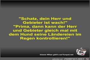 | "Schatz, dein Herr und Gebieter ist wach!" Bild (33.67 KB) 12Lustiges → klasse Sprüche und Witze | Lustiges → klasse Sprüche und Witze | 25.05.21-11:50 | Fossy | |