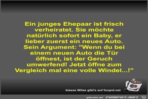 | Ein junges Ehepaar ist frisch verheiratet Bild (43.93 KB) 11Lustiges → klasse Sprüche und Witze | Lustiges → klasse Sprüche und Witze | 24.05.21-11:16 | Fossy | |