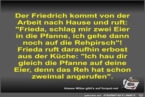 | Der Friedrich kommt von der Arbeit nach Hause und ruft Bild (55.49 KB) 10Lustiges → klasse Sprüche und Witze | Lustiges → klasse Sprüche und Witze | 13.05.21-12:01 | Fossy | |
