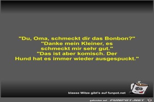 | Du, Oma, schmeckt dir das Bonbon? Bild (26.58 KB) 12Lustiges → klasse Sprüche und Witze | Lustiges → klasse Sprüche und Witze | 12.05.21-16:29 | Fossy | |