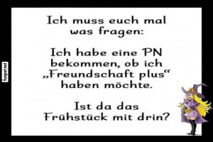 | Frage zu Freundschaft plus und Frühstück Bild (109.9 KB) 3Lustiges → klasse Sprüche und Witze | Lustiges → klasse Sprüche und Witze | 01.05.-19:14 | Erna70 | |