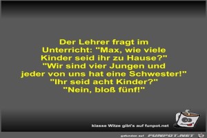 | Der Lehrer fragt im Unterricht Bild (32.51 KB) 9Lustiges → klasse Sprüche und Witze | Lustiges → klasse Sprüche und Witze | 09.05.21-13:48 | Fossy | |