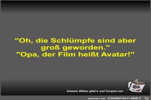 | Oh, die Schlümpfe sind aber groß geworden Bild (22.49 KB) 11Lustiges → klasse Sprüche und Witze | Lustiges → klasse Sprüche und Witze | 12.05.21-08:00 | Fossy | |