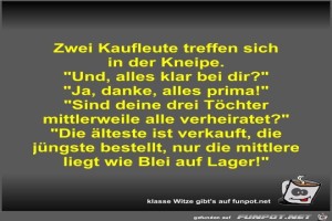 | Zwei Kaufleute treffen sich in der Kneipe Bild (46.28 KB) 6Lustiges → klasse Sprüche und Witze | Lustiges → klasse Sprüche und Witze | 11.05.21-14:22 | Fossy | |