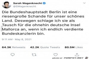 | Sarah Wagenknecht Bild (87.56 KB) 6Lustiges → klasse Sprüche und Witze | Lustiges → klasse Sprüche und Witze | 10.05.21-07:28 | ||