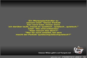 | Ein Wertpapierhändler zu seinem Chef Bild (26.69 KB) 6Lustiges → klasse Sprüche und Witze | Lustiges → klasse Sprüche und Witze | 11.05.21-11:35 | Fossy | |
