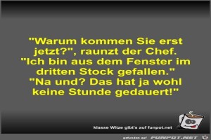 | Warum kommen Sie erst jetzt? Bild (36.87 KB) 6Lustiges → klasse Sprüche und Witze | Lustiges → klasse Sprüche und Witze | 05.05.21-08:09 | Fossy | |