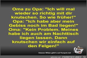 | Oma zu Opa: Ich will mal wieder so richtig mit dir... Bild (52.11 KB) 8Lustiges → klasse Sprüche und Witze | Lustiges → klasse Sprüche und Witze | 02.05.21-14:14 | Fossy | |