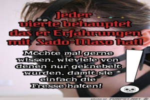 | Sadomaso Bild (122.62 KB) 7Lustiges → klasse Sprüche und Witze Einfach mal die Fresse halten | Lustiges → klasse Sprüche und Witze | 01.05.21-21:37 | Bonobo666 | |