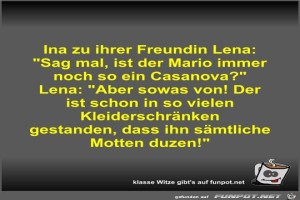 | Ina zu ihrer Freundin Lena Bild (40.68 KB) 12Lustiges → klasse Sprüche und Witze | Lustiges → klasse Sprüche und Witze | 02.05.21-11:26 | Fossy | |