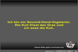 | Ich bin ein Second-Hand-Vegetarier Bild (20.42 KB) 9Lustiges → klasse Sprüche und Witze | Lustiges → klasse Sprüche und Witze | 02.05.21-08:21 | Fossy | |