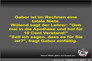 | Gabor ist im Rechnen eine totale Niete Bild (38.72 KB) 10Lustiges → klasse Sprüche und Witze | Lustiges → klasse Sprüche und Witze | 20.04.21-08:01 | Fossy | |