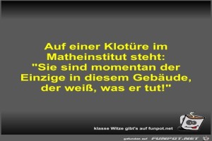 | Auf einer Klotüre im Matheinstitut steht Bild (30.86 KB) 7Lustiges → klasse Sprüche und Witze | Lustiges → klasse Sprüche und Witze | 29.03.21-08:00 | Fossy | |