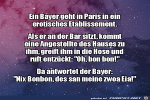 | Ein Bayer in Paris Bild (85.16 KB) 4Lustiges → klasse Sprüche und Witze | Lustiges → klasse Sprüche und Witze | 21.03.21-09:41 | ||