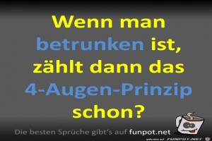 | Das 4-Augen-Prinzip Bild (64.58 KB) 12Lustiges → klasse Sprüche und Witze Man wird ja wohl man fragen dürfen, wenn man schon alles doppelt sieht :-) | Lustiges → klasse Sprüche und Witze | 17.03.21-15:39 | ||