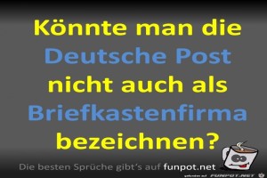 | Briefkastenfirma Bild (73.43 KB) 13Lustiges → klasse Sprüche und Witze Briefkastenfirma hört sich doch klasse an. Immerhin bedient die Post ja Briefkästen! | Lustiges → klasse Sprüche und Witze | 17.03.21-15:39 | ||