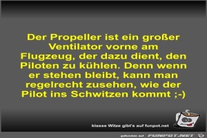 | Der Propeller ist ein großer Ventilator vorne am Flugzeug Bild (41.75 KB) 14Lustiges → klasse Sprüche und Witze | Lustiges → klasse Sprüche und Witze | 15.03.21-11:07 | Fossy | |