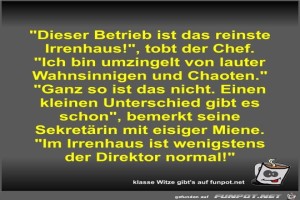 | "Dieser Betrieb ist das reinste Irrenhaus!" Bild (55.22 KB) 12Lustiges → klasse Sprüche und Witze | Lustiges → klasse Sprüche und Witze | 16.03.21-10:47 | Fossy | |