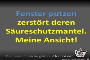 | Fenster putzen Bild (64.9 KB) 13Lustiges → klasse Sprüche und Witze Das ist doch mal eine super Ausrede, wenn man keine Lust zum Fenster putzen hat ;-) | Lustiges → klasse Sprüche und Witze | 17.03.21-15:39 | ||