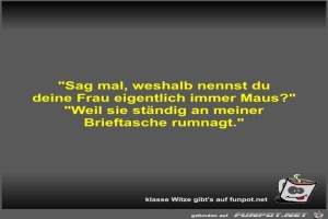 | Sag mal, weshalb nennst du deine Frau eigentlich immer... Bild (24.57 KB) 12Lustiges → klasse Sprüche und Witze | Lustiges → klasse Sprüche und Witze | 12.03.21-08:00 | Fossy | |