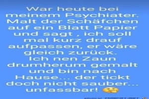 | Der Psychiater tickt nicht richtig Bild (93.65 KB) 13Lustiges → klasse Sprüche und Witze | Lustiges → klasse Sprüche und Witze | 07.03.21-10:24 | Lisa1709 | |