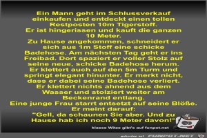 | Ein Mann geht im Schlussverkauf einkaufen und entdeckt... Bild (79.64 KB) 9Lustiges → klasse Sprüche und Witze | Lustiges → klasse Sprüche und Witze | 07.03.21-10:51 | Fossy | |
