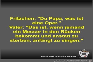 | Fritzchen: Du Papa, was ist eine Oper Bild (35.79 KB) 8Lustiges → klasse Sprüche und Witze | Lustiges → klasse Sprüche und Witze | 07.03.21-15:20 | Fossy | |