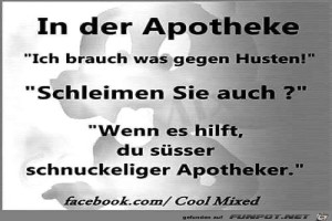 | In der Apotheke Bild (43.96 KB) 8Lustiges → klasse Sprüche und Witze | Lustiges → klasse Sprüche und Witze | 05.02.21-16:54 | Ilor | |