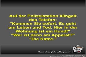 | Auf der Polizeistation klingelt das Telefon Bild (36.1 KB) 5Lustiges → klasse Sprüche und Witze | Lustiges → klasse Sprüche und Witze | 05.02.21-12:01 | Fossy | |