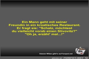 | Ein Mann geht mit seiner Freundin in ein kroatisches... Bild (27.33 KB) 6Lustiges → klasse Sprüche und Witze | Lustiges → klasse Sprüche und Witze | 06.02.21-13:54 | Fossy | |