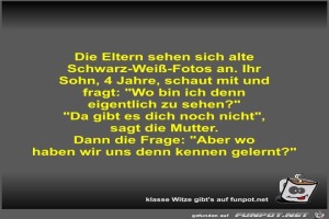 | Die Eltern sehen sich alte Schwarz-Weiß-Fotos an Bild (38.74 KB) 6Lustiges → klasse Sprüche und Witze | Lustiges → klasse Sprüche und Witze | 06.02.21-11:06 | Fossy | |