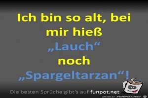 | Spargeltarzan Bild (53.81 KB) 9Lustiges → klasse Sprüche und Witze Spargeltarzan ist klasse, wobei Lauch durchaus auch Witz hat :-) | Lustiges → klasse Sprüche und Witze | 03.02.21-10:15 | ||