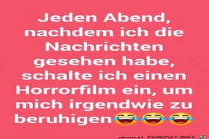 | Nach den Nachrichten erst mal einen Horrorfilm Bild (67.03 KB) 28Lustiges → klasse Sprüche und Witze | Lustiges → klasse Sprüche und Witze | 03.02.21-07:51 | ||